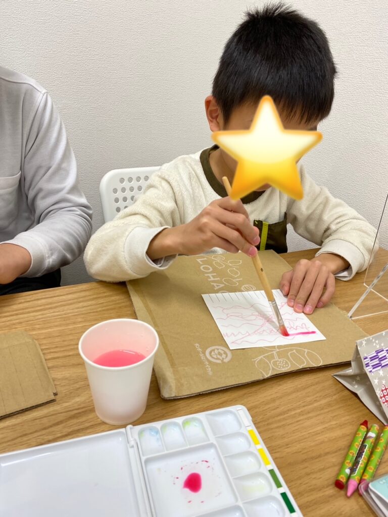 本日は、絵の具とクレヨンを使って、はじき絵をして、着物の模様作りをしました。