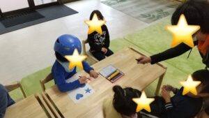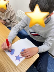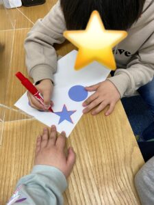 丸、星、ハートの中から好きな形を選び、色を塗りました(^^)