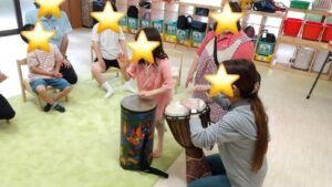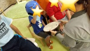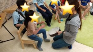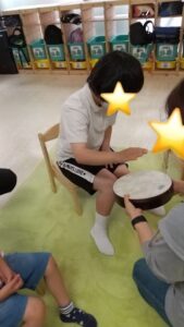 一人一人、太鼓のリズムで先生と挨拶をしました(^^)/