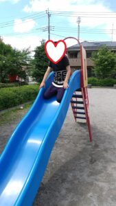 公園に着くと、真っ先にブランコに乗る子や滑り台に乗る子、走る子とみんな大喜びで遊びました!(^^)!