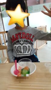 まずは、好きな味のシロップとゼリーをコップに入れます☺
