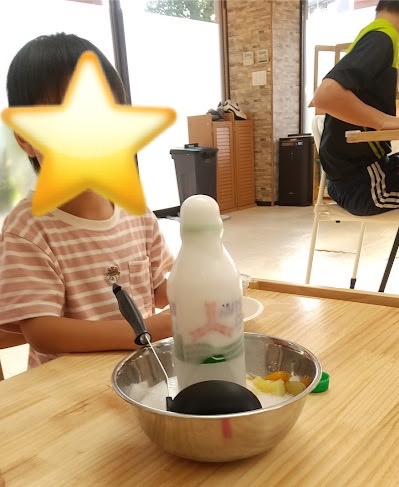 さぁ、ここからがメインイベント♪サイダーにメントスを入れると噴水のように吹き上げます(^_-)-☆