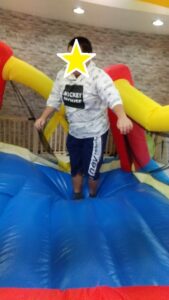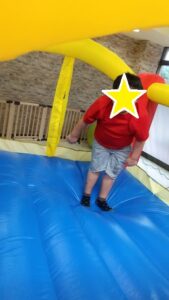 本日は公園遊びの予定でしたが、雨が降っていたため、室内で「バウンサー」を行いました!