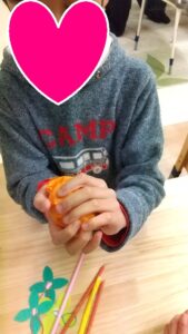 本日は、「季節の果物を作ろう」ということで、【柿のオブジェ】の制作を行いました!!