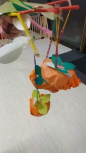 次に、柿のヘタの部分を貼って、枝につるせば完成です!(^^)!