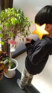 こちらは、室内で育てている観葉植物のお世話とハロウィンの飾りを行いました♪