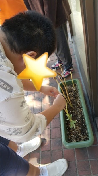 こちらは、夏から育てていたオクラの収穫とプランターの片付けを行いました。