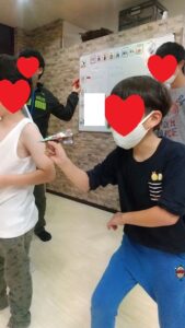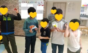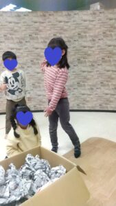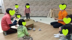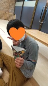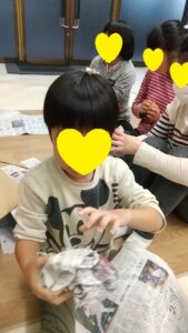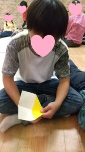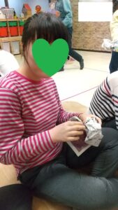 まず紙飛行機作りと新聞紙ボールを作ります、手先の感覚を鍛えられますね!
