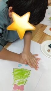 オクラやレンコン等の野菜を使い、スタンピングしました☆