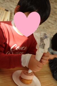 美味しそうなケーキが完成し、みんなパクパク食べていました(^^♪