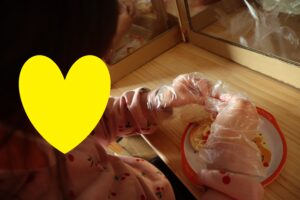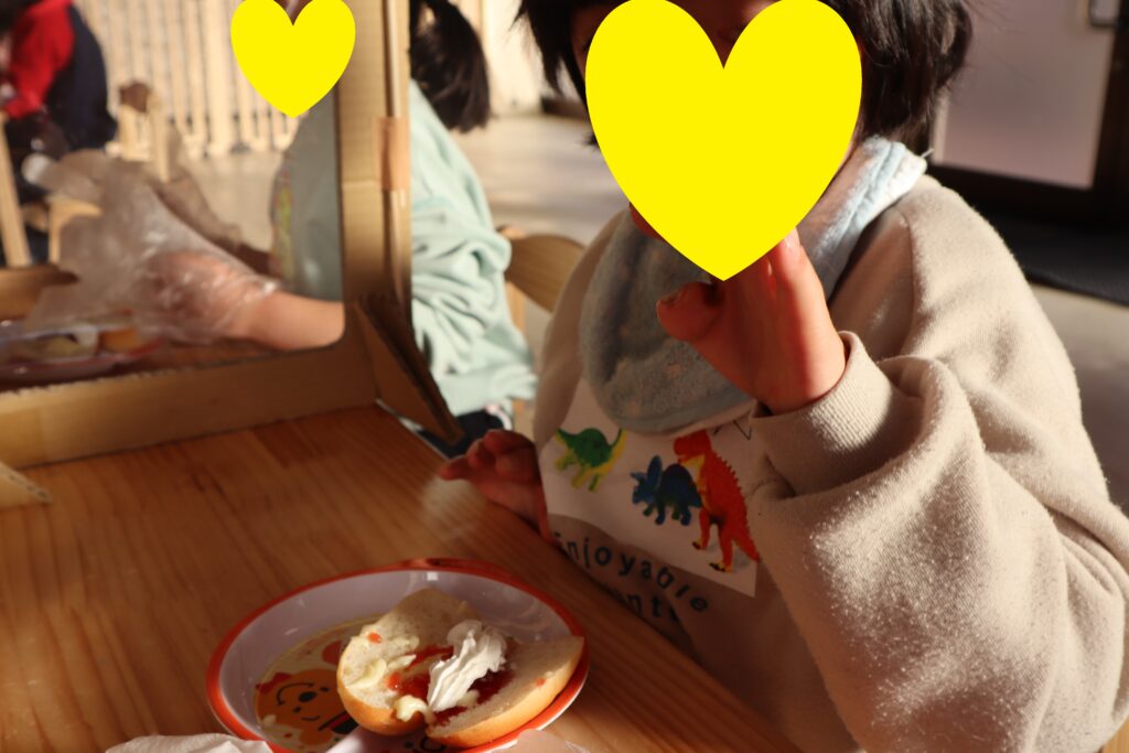 本日の課題は、コッペパンに好きな具材を挟んで、オリジナルのコッペパンサンドを作りました😊