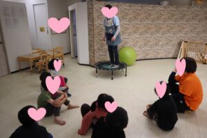最後は、トランポリンです♪10回上手に跳ぶことができました☆