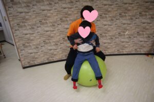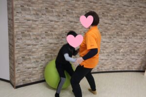 次は、バランスボールです!スタッフと一緒にピョンピョン跳びました♪