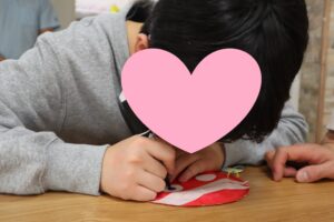 まずは、赤・青・黄色の中から、好きな色の紙皿を選んで、目や口を描いていきます!(^^)!
