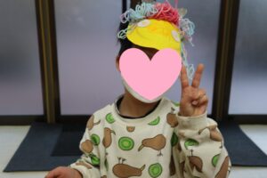 残りは、毛糸で鬼の髪の毛を付けて・・