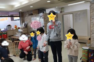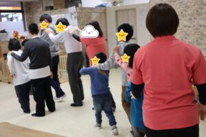 ・「パン屋さん」や「バスに乗って」などの曲に合わせて、お友達同士やスタッフとコミュニケーション★