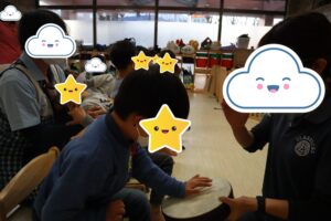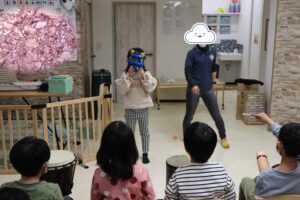 鬼役の子の動きに合わせて、みんなが持つ楽器のリズムも変えていきます。