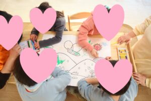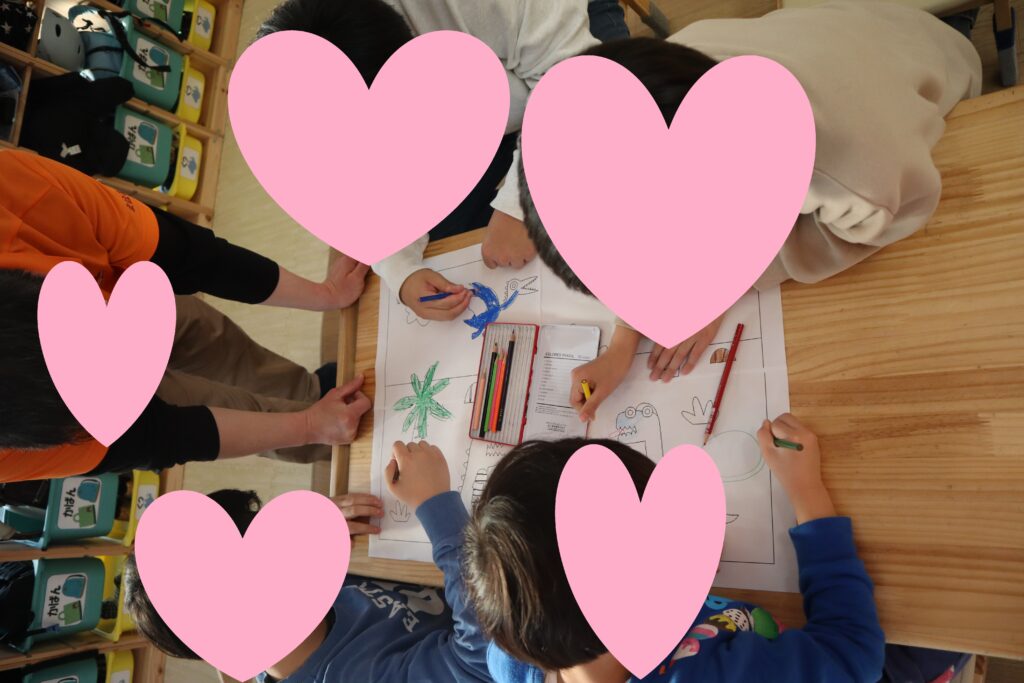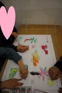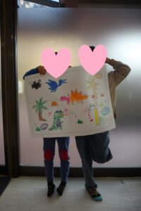 色鉛筆や、クレヨンでいろんな色を使って塗り塗り♬。