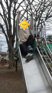 滑り台も楽し~い!。とっても人気で、みんな1回は滑り台で遊びました♬