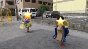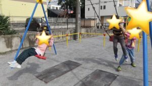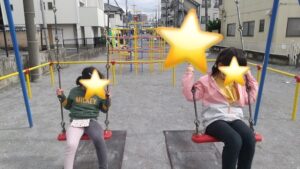 お友達同士でブランコをおしてあげる姿が微笑ましいですね♡