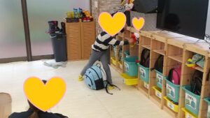 アルコール消毒⇒ただいま⇒鞄と水筒を置く⇒体温を測る