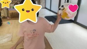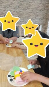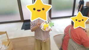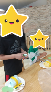 甲羅が出来上がると、紙皿にシールを貼ったり、模様を描いたりしていきます✏
