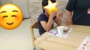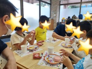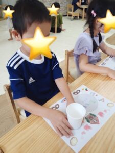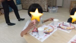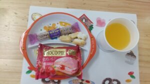 とっても美味しいおやつやジュースにみんなニコニコ♪