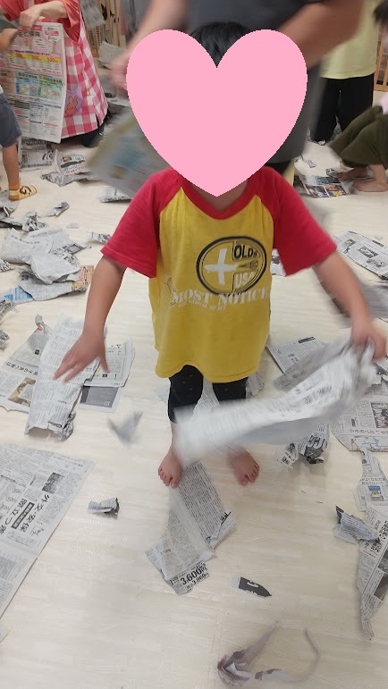 今日は、みんなで新聞紙遊びをしました。