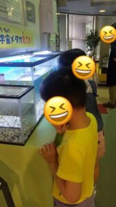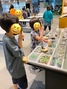 まずは、生き物の展示です。標本があったり、本物の昆虫やお魚があったりと、みんな大興奮でした(#^^#)