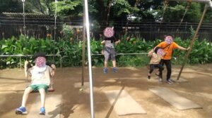 その後、お隣の公園でしっかり身体を動かせました。(あれ、午前中にあんなにバウンサーしたのに・・・みんな元気だなぁ♪)