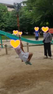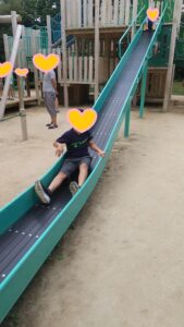 公園にはアスレチックや池などがあり、みんな大はしゃぎで遊びました~