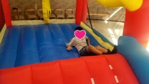 ぴょんぴょん跳ねたり、ゴロゴロして、空気の感覚を楽しみます!