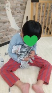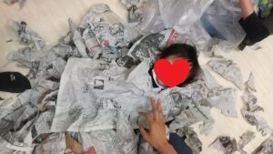 ちぎったり、集めてフカフカにしてみたり、お友達を新聞だらけにしてみたり、