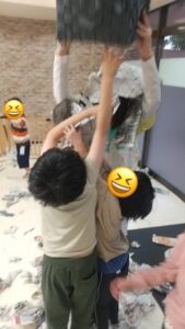 みんなで思い切り紙をビリビリ破いて楽しみましょう~!