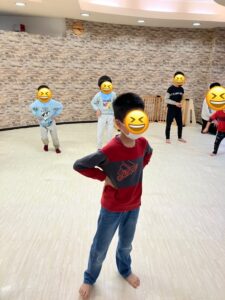 まずは、「ラジオ体操」で準備運動をし、「ようかい体操」や「ばななくん体操」、「ジャンボリーミッキー」を踊りました🎵