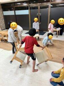 課題の後は、みんなで椅子や机を協力して運んでくれました😆