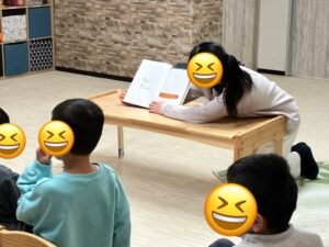 絵本が終わると、拍手👏をしてくれて、スタッフもとても嬉しいです♪