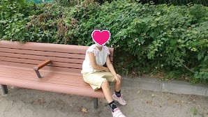 たっくさんからだを動かした後は、ベンチでひと休み😌