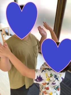 リトミック活動では、お友達同士で手のひらをたたき合う「パン屋さん」