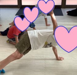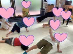 これは腕立てクランチですね。片腕でやっている子もいますね。