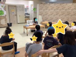 4人のスタッフが子どもたちに向かって読み聞かせます…♡