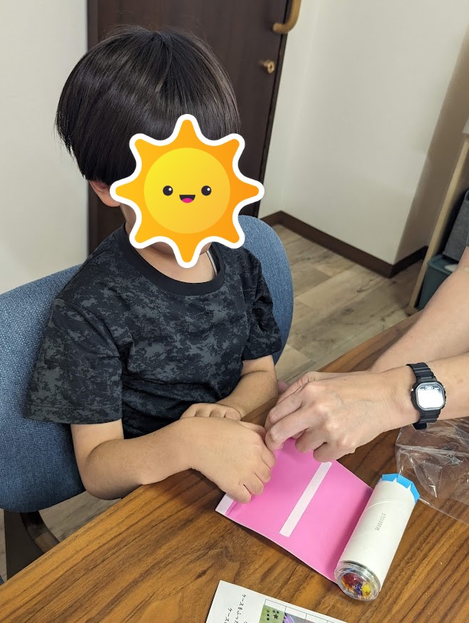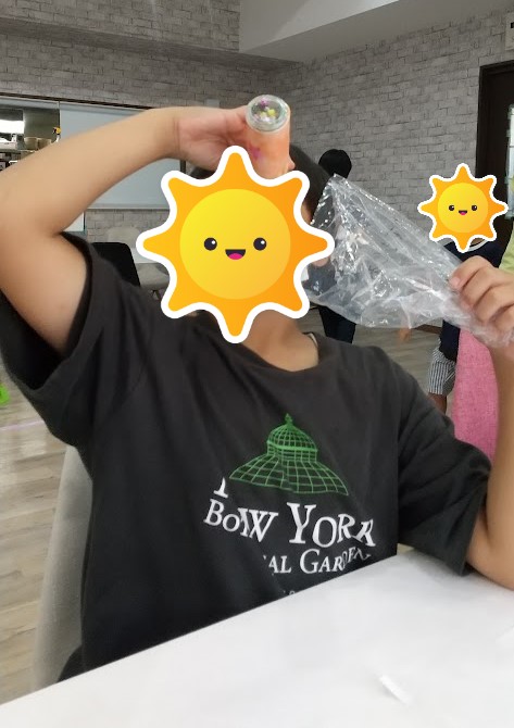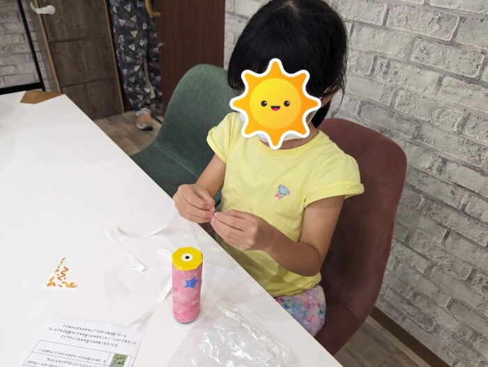 出来上がった万華鏡を光にあててくるくる回しながら覗いたり、「みて~っ😊」とスタッフにみせてくれました♪