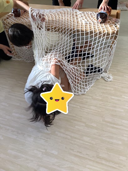 ➂ネットをくぐります。