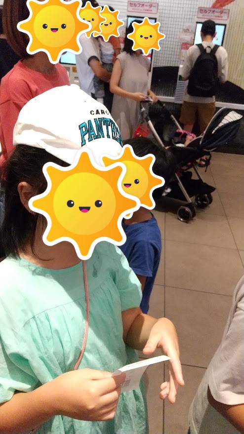 1列で静かにしっかり順番を待って、順番が来ると店員さんに上手に注文を伝えます😘