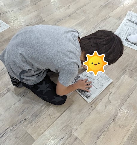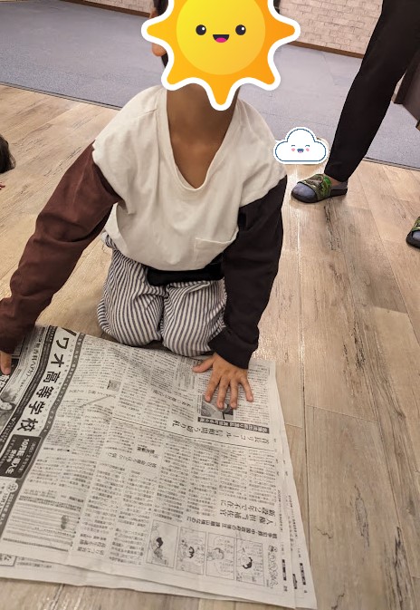 勝ったお友達とあいこのお友達は、そのままの大きさの新聞紙でもう一回😊