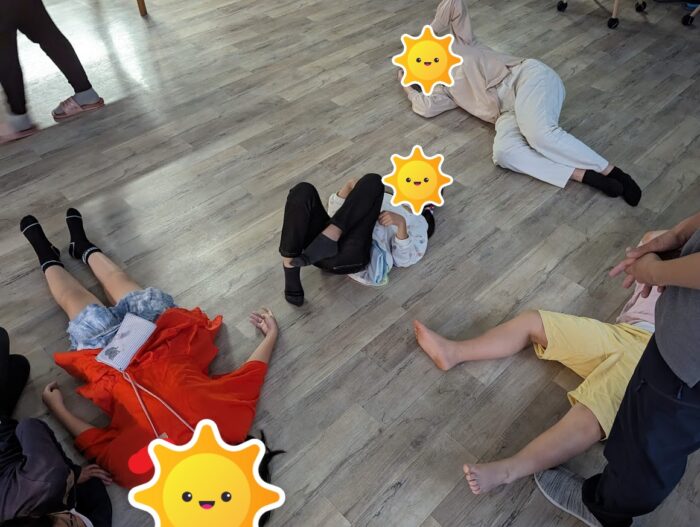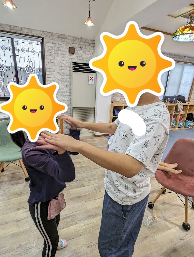 まずはリトミックでお友達やスタッフと手遊び👐