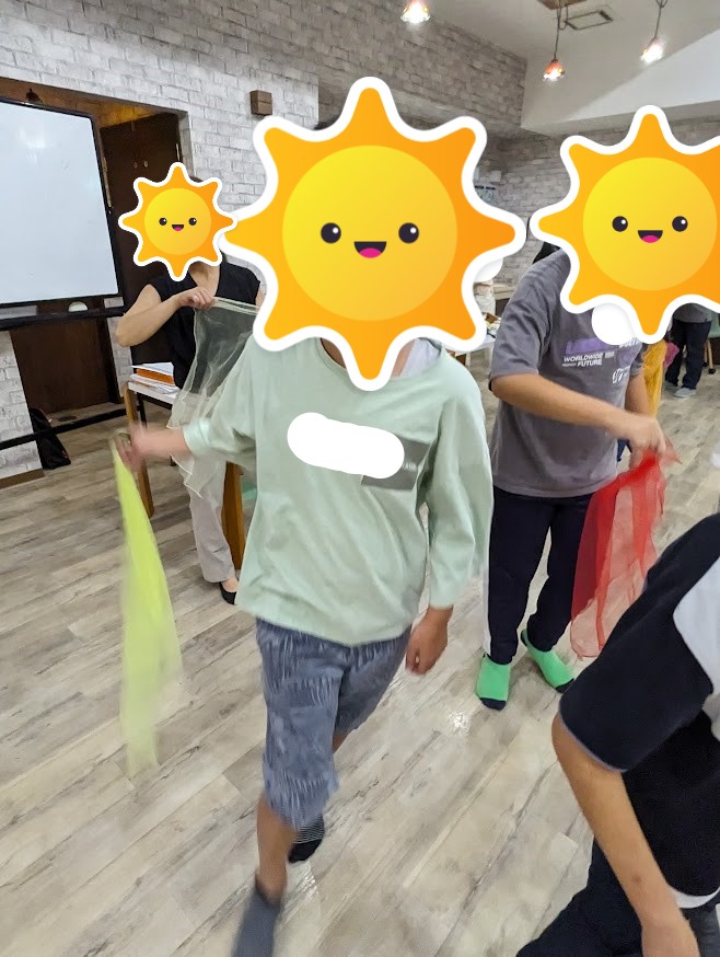 お次はカラフルな布をふわっと振りながら、ゆっくりとダンスを踊ります💃