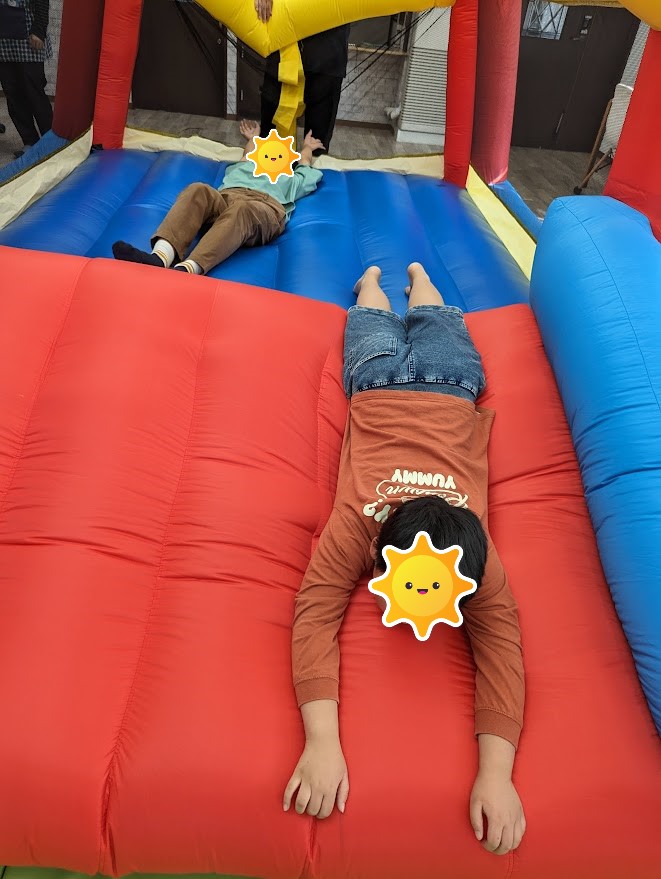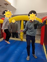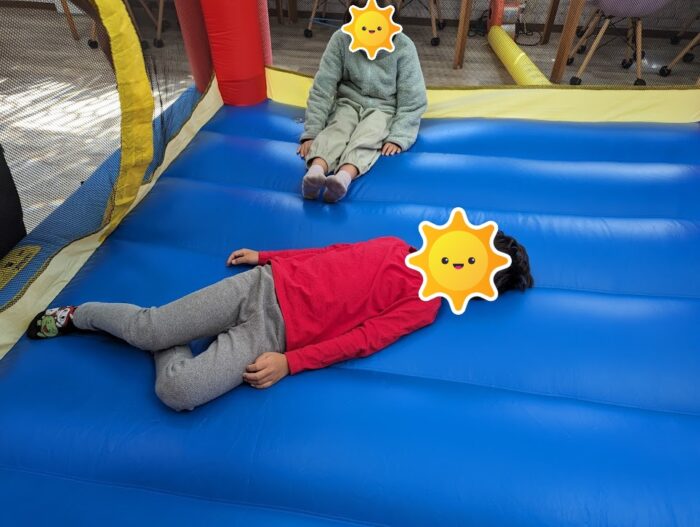 まずはお友達とバウンサーの中に入ってピョンピョン🐰