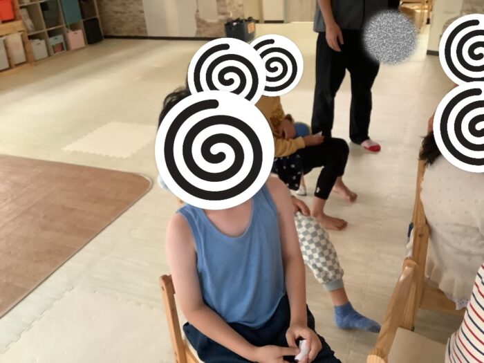 動物の絵が描かれているので同じ動物が貼ってあるイスを探します👀