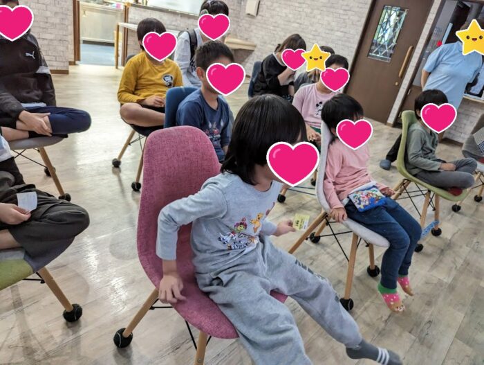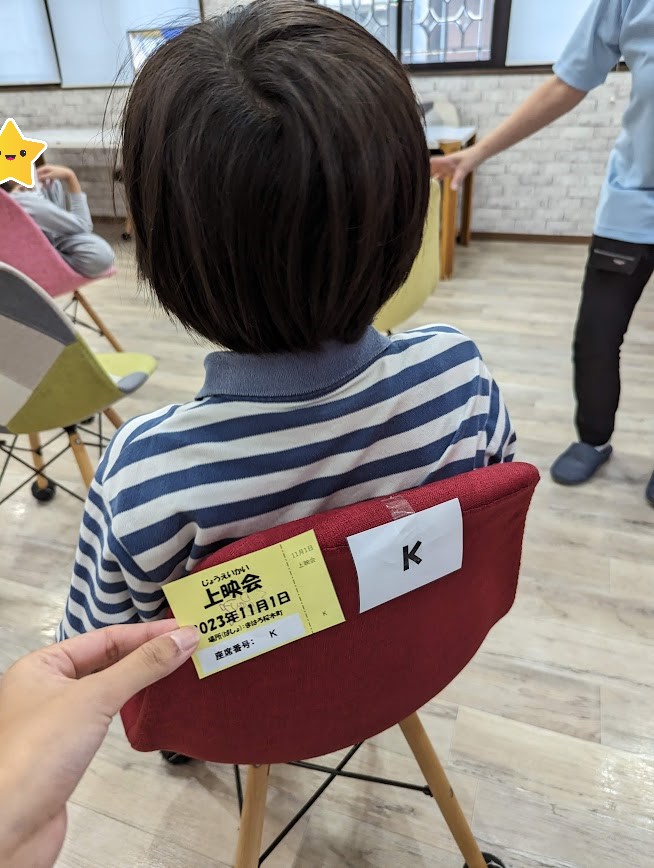 映画館形式で、店員役のお友達と、お客さん役のお友達に分かれました。